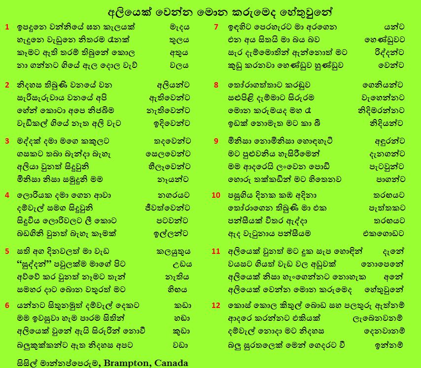 සුපුරුදු සුවඳ අරගෙන දුර ඈත කොනේ