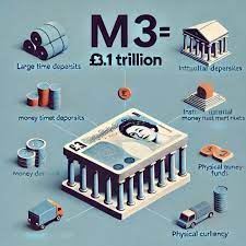 M2 - පුළුල් මුදල් සැපයුම = M1 + ඉතිරි කිරීමේ ගිණුම් සහ ස්ථිර තැන්පතු