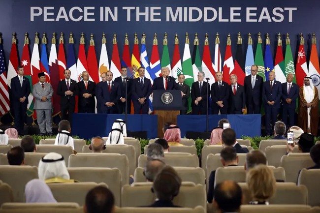 ඊශ්රායල ප්රාණඇපකරුවන්, පලස්තීන සිරකරුවන් සහ රැඳවියන් නිදහස් කිරීමෙන් පසු ගාසා සටන්විරාම ගිවිසුමේ පළමු අදියරට අමෙරිකානු ජනාධිපති ඩොනල්ඩ් ට්රම්ප් ඇතුළු ලෝක නායකයින් අත්සන් තබා තිබේ.ඒ ඊජිප්තුව, තුර්කිය සහ කටාර් නායකයින් එක්වය.