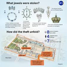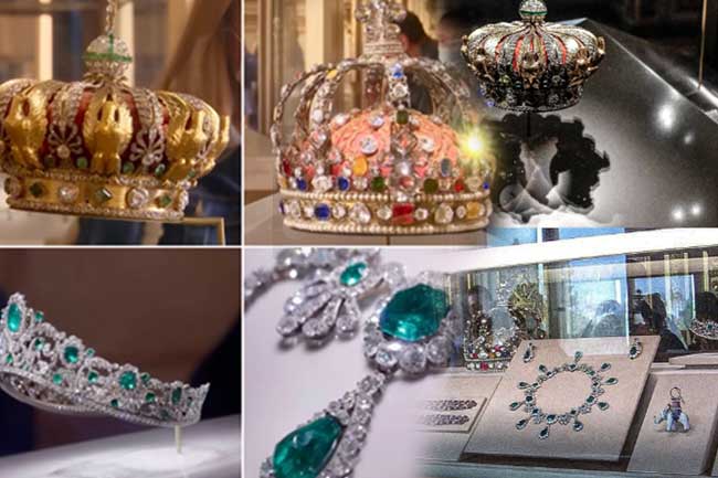 අධි ආරක්ෂාවක් යටතේ පවතින ප්රංශයේ පැරිස් නුවර ලූවර් කෞතුකාගාරයේ තැන්පත් කර තිබියදී පැහැරගත් මිල කළ නොහැකි ආභරණ නම් කර තිබෙනවා.