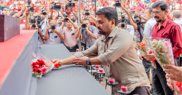 එහිදී ජනතා විමුක්ති පෙරමුණේ නිර්මාතෘ රෝහණ විජේවීර ඇතුළු එම පක්ෂයේ මියගිය පිරිස සිහිගන්වමින් පුෂ්පෝපහාර දැක්වීම සිදු කෙරිණි.