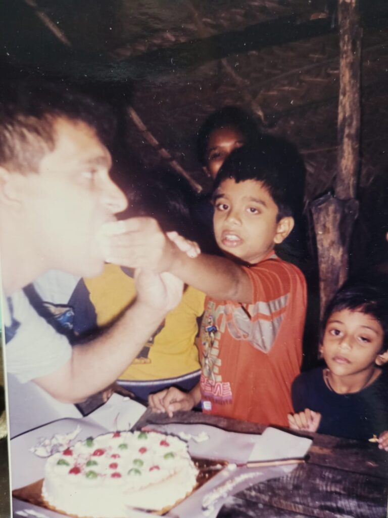 ඔහු අපේ සාකච්චාවට ආරම්භයක් දුන්නෙ ඔහුගේ ළමා කාලයෙන්, “මගේ පුංචි කාලෙ දඟ කාරකම් බොහෝ විට අවසන් වුයේ අතපයත් කඩාගෙන. ඉතා විනයානුකුලව දරුවන් ඇති දැඩි කල “බබ්සි ඇන්ටි” නම්වූ මගේ මවගෙන් වැඩියෙන්ම වේවැල් පාරවල් කෑ දරුවා උනෙත් මම. කාටත් උදව් උපකාර කල මගේ අම්මා, කෙතරම් අඩුපාඩු ගෙදර තිබුනත් අපිව එලියට එක්කරගෙන ගියේ ඉතාමත් ලස්සනට ඇඳුම් අන්දවලා. ඒ වගේම හැමදාම හැන්දෑවට අපි දරුවන් කවුරුත් එක්ව දණ ගසා ජපමාලය කියා දෙවියන්ට කරනා යාඥාව කිසි දිනක වැරද්දුවේ නැහැ. එය තමයි මගේ ආත්මික ජීවිතයේ පදනම. ඒකෙන් අදහස් වෙන්නෙ නැහැ මේ ජීවන ගමනේදී අපි ගත් තීරණ හැමදේම සර්ව සම්පුර්ණයි කියලා. නමුත් මවක් ලෙස කල ඒ මඟ පෙන්වීම අපි හැමෝටම මඟ පෙන්වූ තාරකා එළියක් උනා.” යැයි ඒ සුන්දර ළමා කාලය ගැන ඔහු කතා කලේ මුවඟට නැගුනු අපුරු සිනහවත් සමඟම.