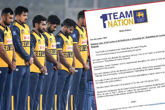 ඒ අනුව තරගාවලියේ ලාභය රජයේ ‘Rebuilding Sri Lanka’ වැඩසටහනට පරිත්යාග කෙරෙන අතර තරගාවලිය අතරතුර #VisitSriLanka හැෂ් ටැගය ප්රවර්ධනය කිරීමට පියවර ගැනීමට නියමිතය. මීට පෙර අදාළ රජයේ අරමුදල සඳහා රුපියල් මිලියන 300ක් පරිත්යාග කිරීමට ද ශ්රී ලංකා ක්රිකට් ආයතනය තීරණය කළේය. ශ්රී ලංකා – පාකිස්තාන තරගාවලිය එළැඹෙන 7 වැනිදා සිට ඇරැඹීමට නියමිතය.