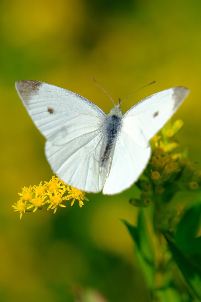 ඇගේ බිඳෙනසුලු පියාපත් මත දුඹුරු පැහැ ලප ඇති සුදු සමනළයෙක්