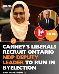 අගමැති මාර්ක් කාර්නිගේ ලිබරල් පක්ෂය අතුරු මැතිවරණයකට ඉදිරිපත් වීමට සූදානම් වන විට ඔන්ටාරියෝ එන්ඩීපී පක්ෂයේ නියෝජ්ය නායිකාව සිය ධුරයෙන් ඉල්ලා අස්වී පක්ෂ සාමාජිකත්වය වෙනස් කර තිබේ.